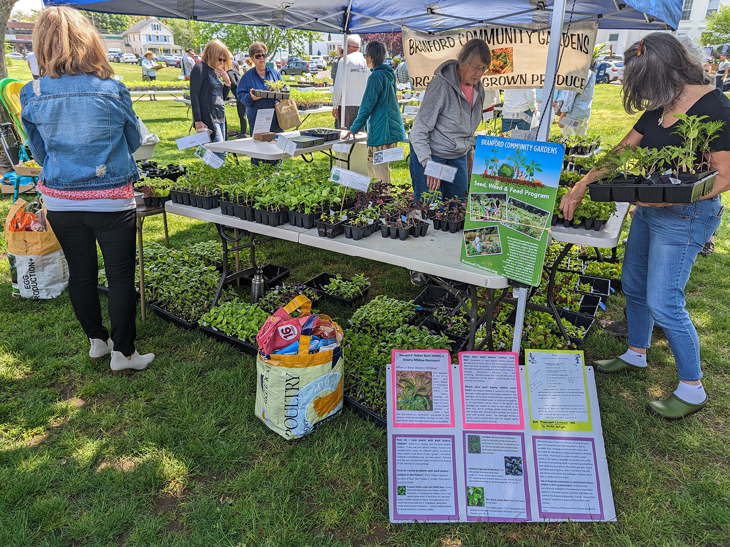 We hold two fundraisers each year, the first in May when we sell organically grown seedlings, native plants and flowers with the Branford Garden Club, and September when we sell produce grown in the garden and flower arrangements with the Branford Garden Club. Please follow our Facebook page for dates, times and opportunities to volunteer.